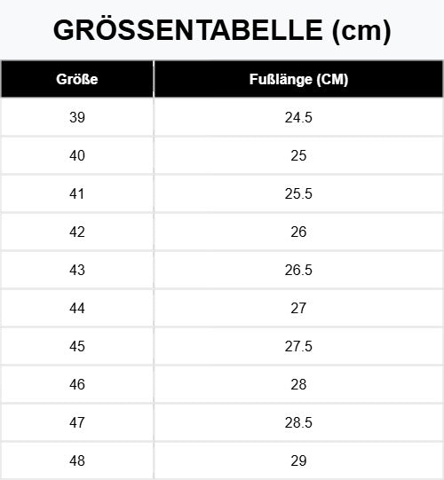 Wenn Sie Zweifel bezüglich Ihrer Größe haben, wählen Sie eine Nummer größer als die, die Sie normalerweise tragen.