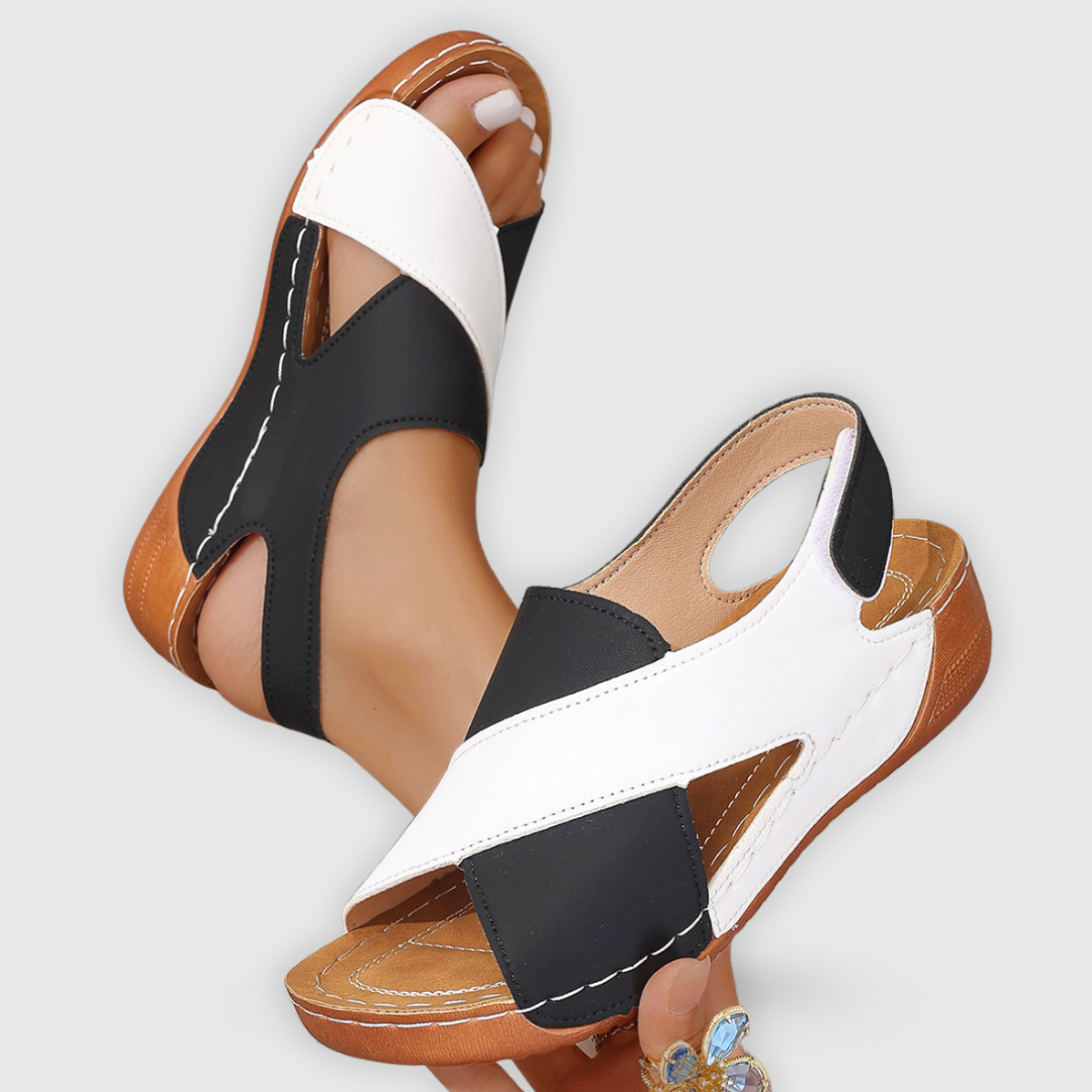 Die Nena-Sandale kombiniert ein modernes Design mit sommerlichen Farbkontrasten und einer Form, die deinem Fuß echten Halt gibt. Die orthopädische Keilsohle unterstützt die natürliche Haltung und sorgt für ein angenehmes Laufgefühl. Ideal für alle, die stilvoll durch den Sommer gehen möchten – ohne auf Komfort zu verzichten.