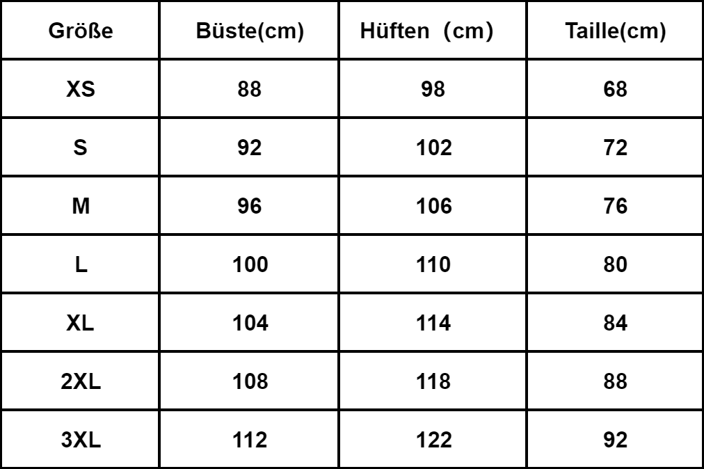 Wenn Sie Zweifel an Ihrer Größe haben, wählen Sie eine Größe, die größer ist als die, die Sie normalerweise tragen.