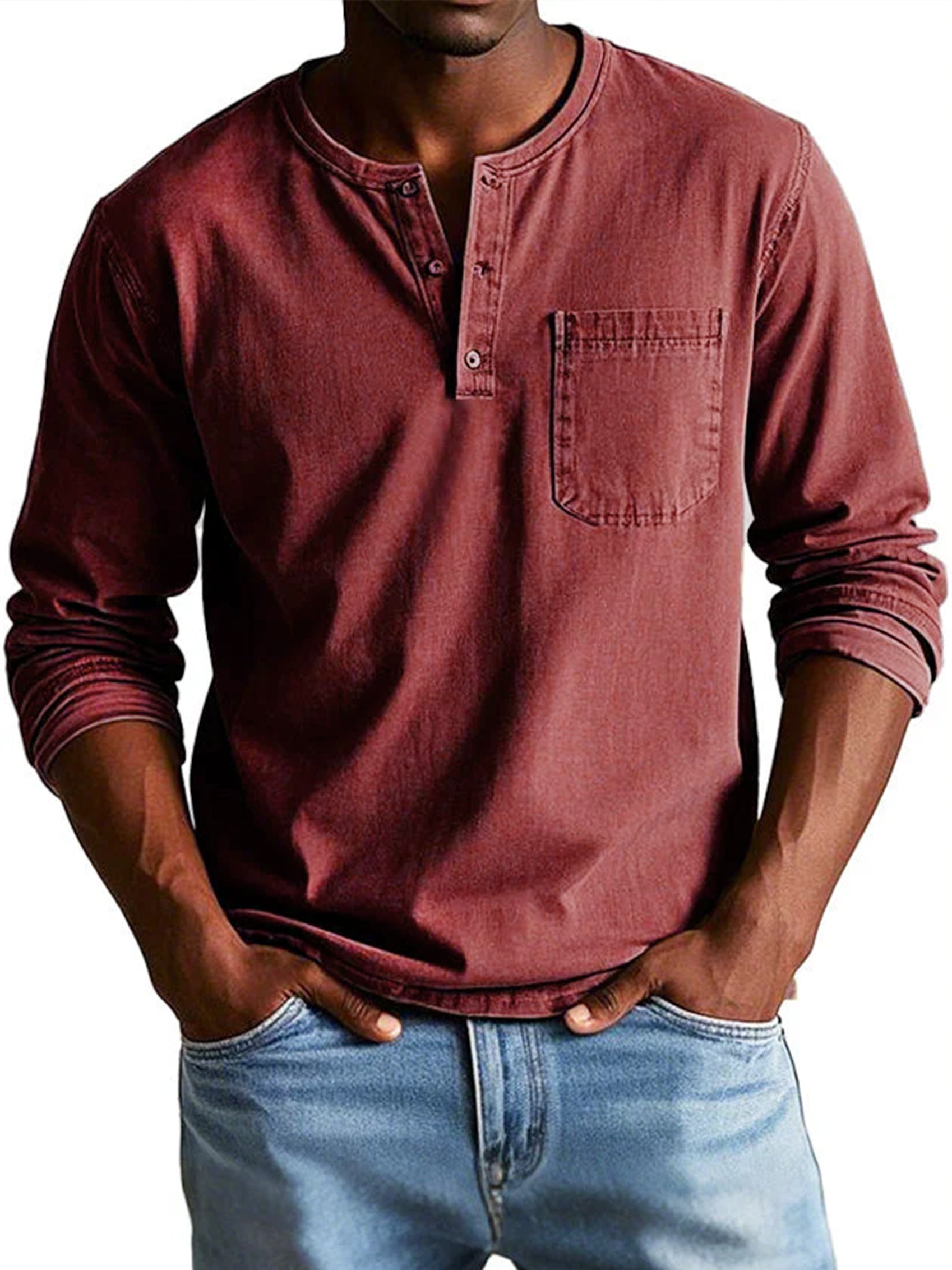 ✔ Handwerkliche Verarbeitung – Der Henley-Kragen und die subtilen Vintage-Details verleihen Charakter, während der leicht dehnbare Stoff optimale Bewegungsfreiheit bietet.