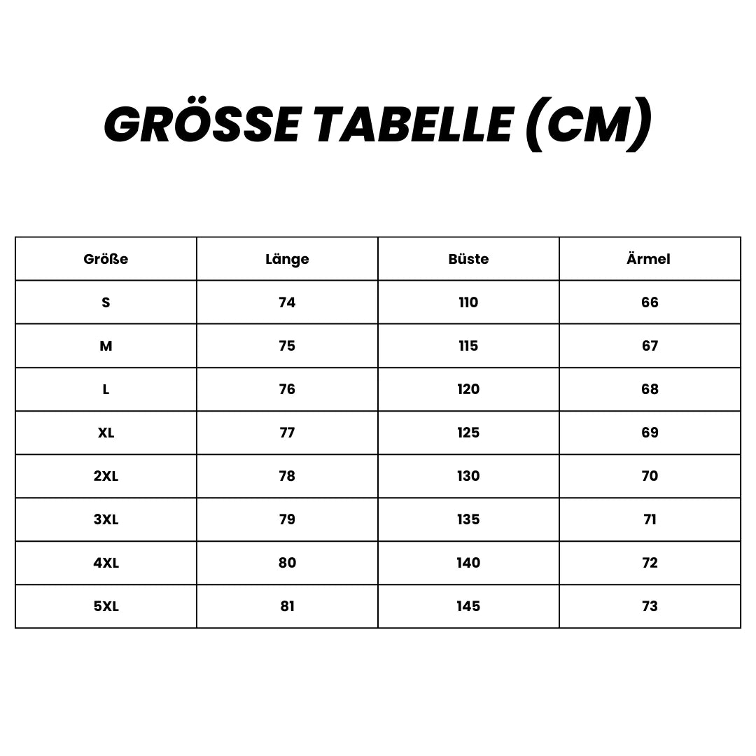Wenn Sie unsicher bei der Größe sind, wählen Sie eine Größe größer als gewohnt.