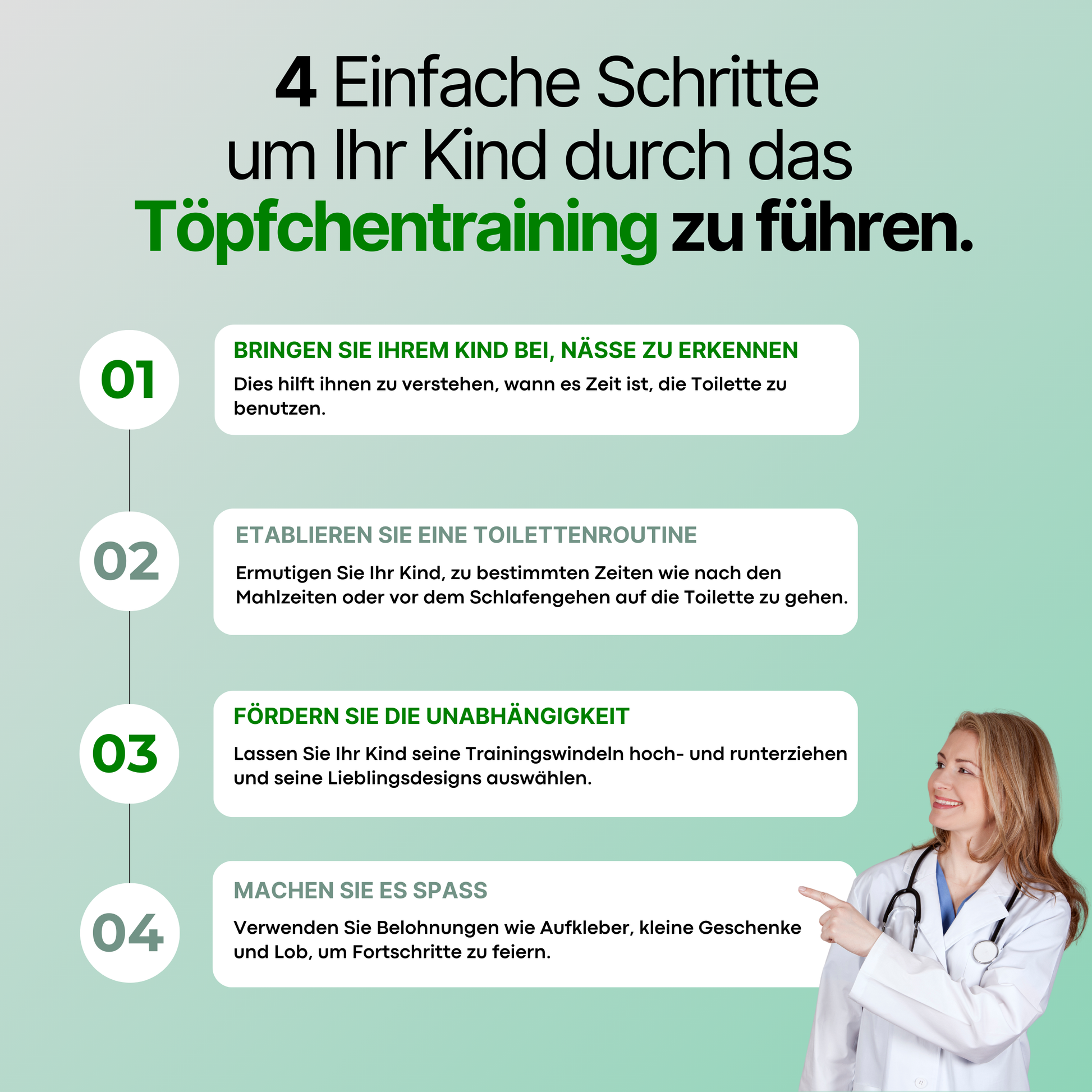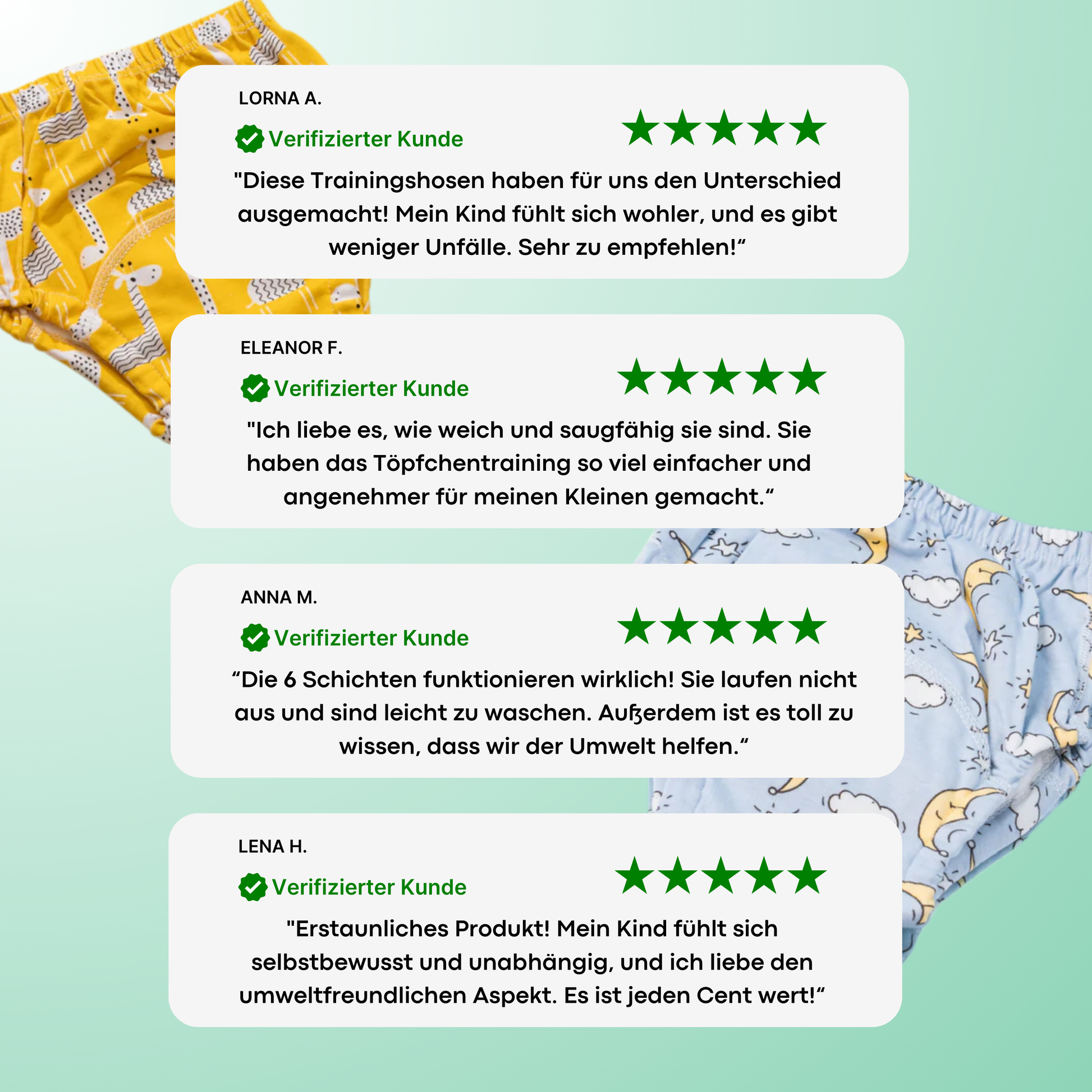 - Spüren Sie den Unterschied: Mit unserem intelligenten Schichtsystem spürt Ihr Kind, wann es nass ist, und erkennt so, wann es Zeit ist, aufs Töpfchen zu gehen. Diese subtile Wahrnehmung fördert den Fortschritt und sorgt gleichzeitig für Komfort.