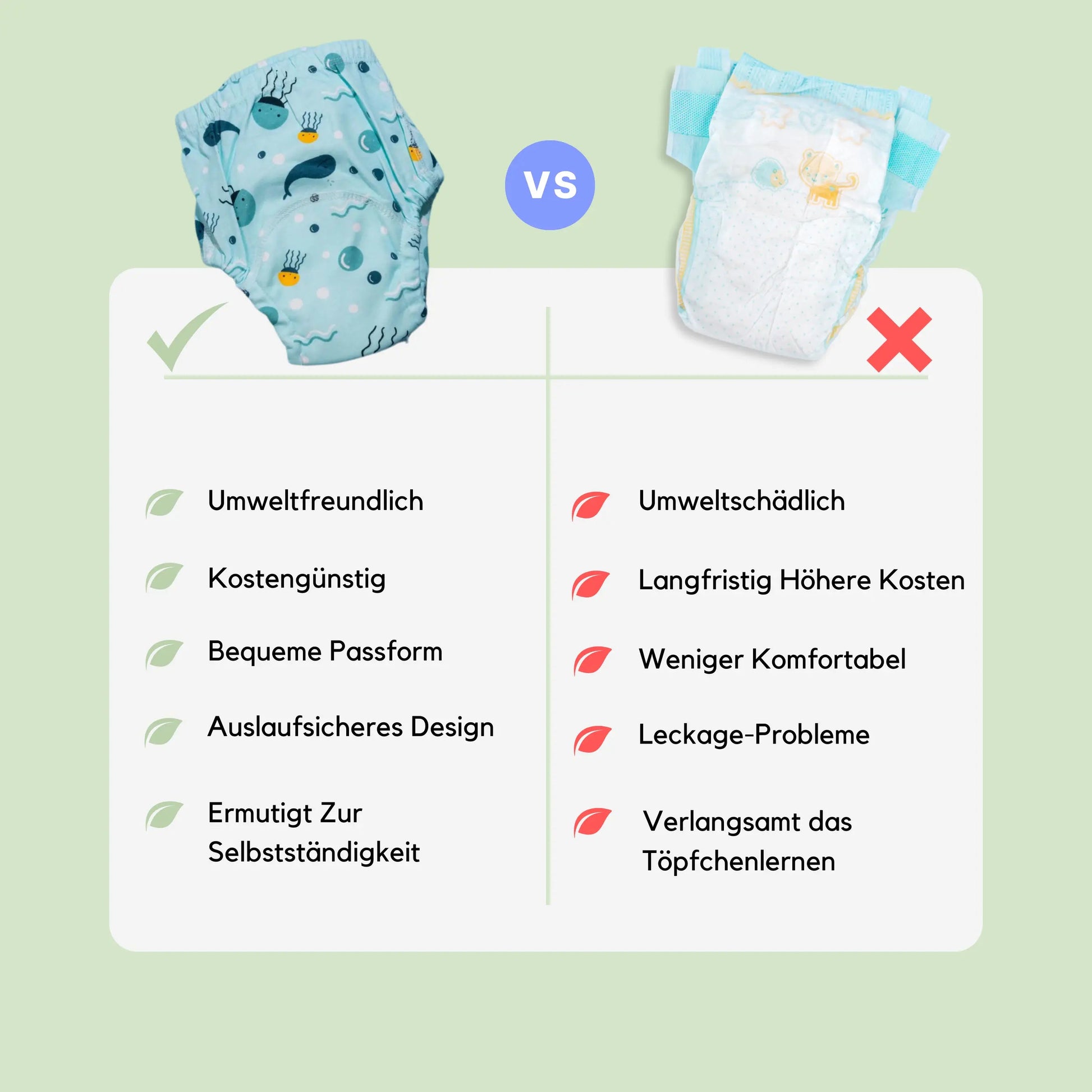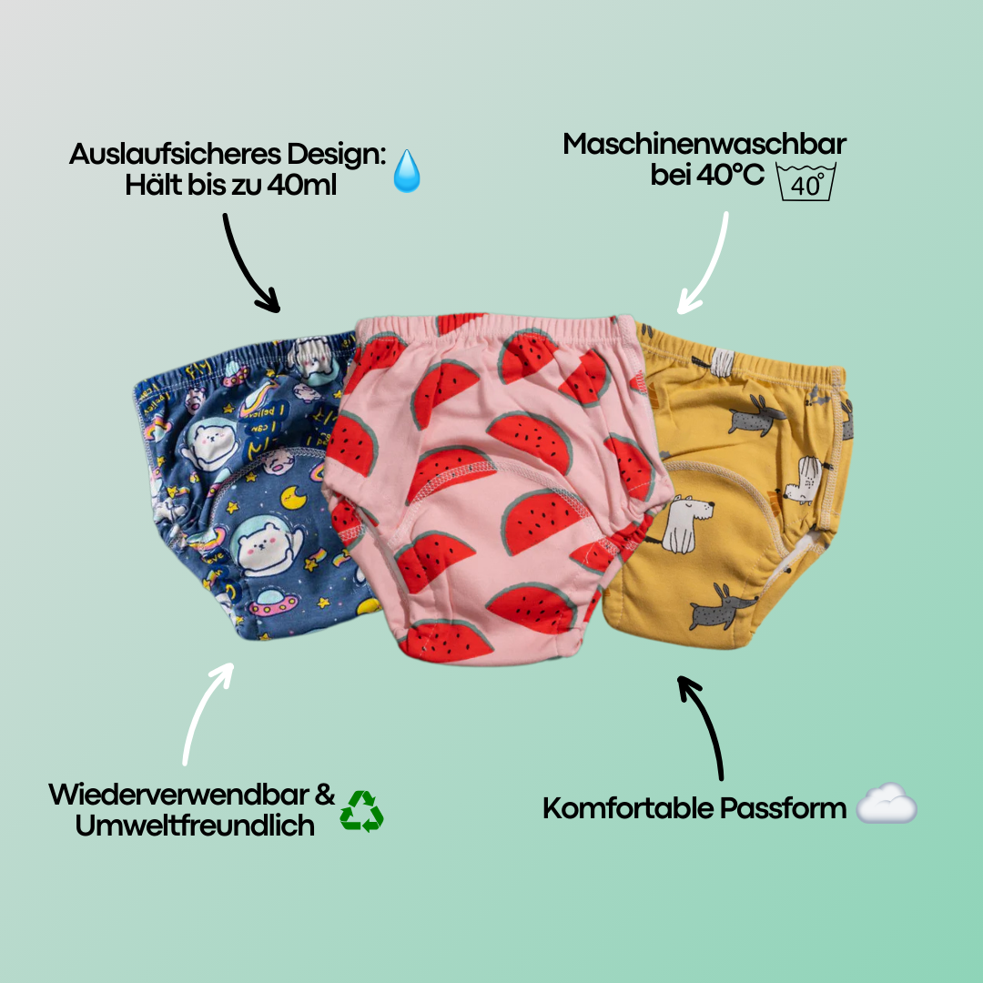 Sind Sie bereit für das Töpfchentraining Ihres Kleinkindes? Fangen Sie gleich hier mit unseren umweltfreundlichen Trainingshosen an. Diese aus weicher, atmungsaktiver Baumwolle gefertigten Trainingswindeln bieten maximalen Komfort – Ihr Kind wird sie gar nicht mehr ausziehen wollen!