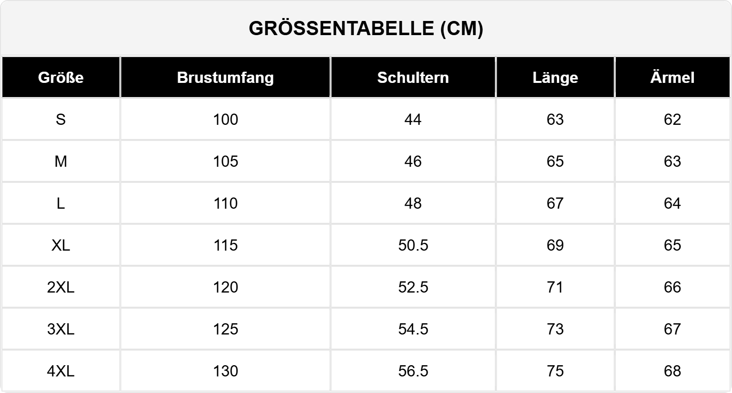 Wenn Sie zwischen zwei Größen liegen, empfehlen wir, die größere Größe zu wählen.